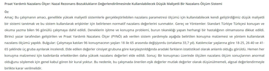 Praat Yardımlı Nazalans Ölçer: Nazal Rezonans Bozuklukların Değerlendirilmesinde Kullanılabilecek Düşük Maliyetli Bir Nazalans Ölçüm Sistemi Bu çalışmanın amacı, genellikle yüksek maliyetli sistemlerle gerçekleştirilebilen nazalans parametresi ölçümü için kullanılabilecek kendi geliştirdiğimiz düşük maliyetli bir sistemi tanıtmak ve…
