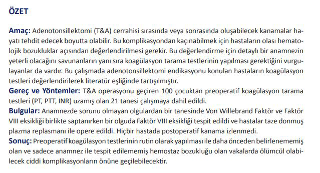 Adenotonsillektomi (T&A) cerrahisi sırasında veya sonrasında oluşabilecek kanamalar hayatı tehdit edecek boyutta olabilir.  Makalenin tamamı için tıklayın.