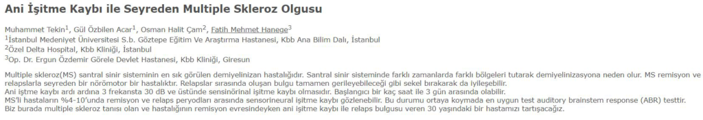 Multiple skleroz(MS) santral sinir sisteminin en sık görülen demiyelinizan hastalığıdır. Santral sinir sisteminde farklı zamanlarda farklı bölgeleri tutarak demiyelinizasyona neden olur. Makalenin tamamı için tıklayınız.